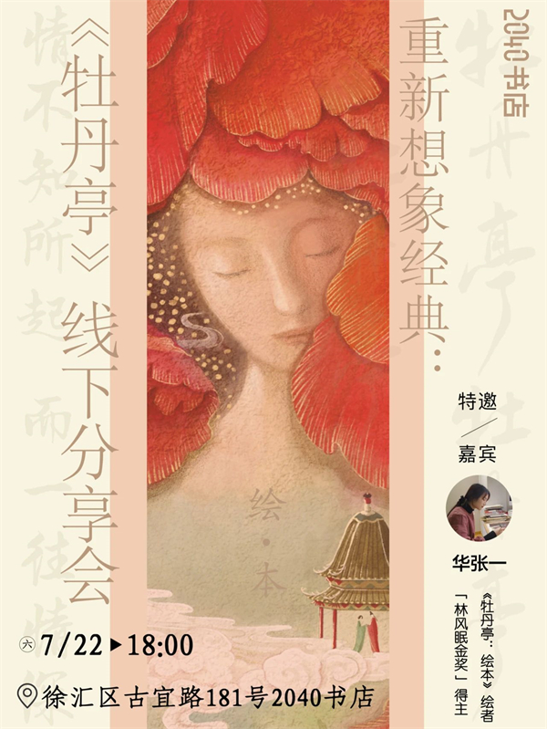 本周六,我们将邀请《牡丹亭:绘本》的绘者、“林风眠金奖”得主、知名青年画家华张一,以及这套绘本的产品总监,同时也是果麦版《诗经》《楚辞》《红楼梦》等众多知名古典文学、文艺类图书的编辑、装帧设计师余雷,和大家一同聊聊《牡丹亭》,也讲讲这套历时三年绘就的《牡丹亭:绘本》里,那些奇幻、诡谲、徘徊、热烈,令人一往情深的故事。