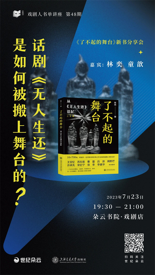 《了不起的舞台》是林奕创作的一部话剧入门读物。本书围绕她的代表话剧作品《无人生还》展开,聚焦导演、演员、幕后人员的日常工作,全方位介绍了剧场、剧本、布景、选角、音效及灯光设计等话剧相关知识,图文并茂地展现了话剧舞台背后的热爱与坚持。7月23日晚,导演林奕、上海捕鼠器戏剧工作室创始人童歆,将一同做客朵云书院·戏剧店,从《了不起的舞台》一书出发,分享话剧《无人生还》台前幕后的故事。