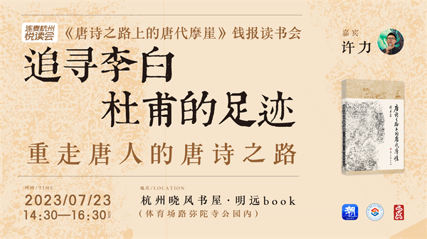 电影《长安三万里》最近很火,唐代诗人除了写诗,名篇如潮,石刻遗迹在杭州也不在少数。7月23日下午 ,许力老师将来到晓风·明远BOOK讲讲最近很红的李白,也要讲讲杜甫——在浙江,我们如何重走他们的唐诗之路?唐诗之路,呈现的是唐代的浙江文化史,也是一部唐代文人浙江交游史。