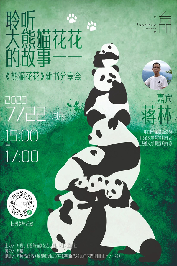 7月22日,方所成都店邀请中国作家协会会员蒋林与我们分享其新作《熊猫花花》,讲述顶级流量“花花”的成长故事以及大熊猫的科普知识,教大家如何正确“吸猫”。