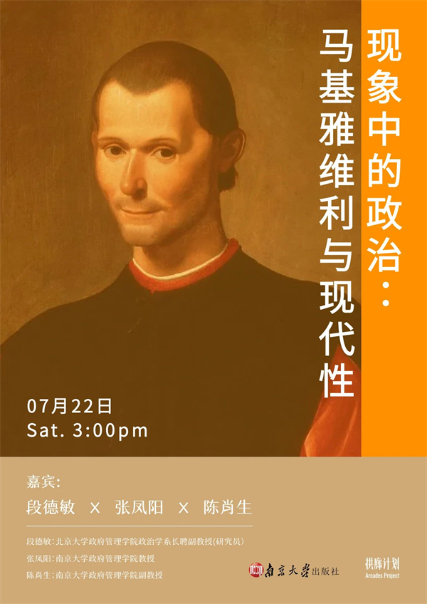 7月22日下午,南京大学政府管理学院张凤阳老师和陈肖生老师将做客拱廊计划,携手《现代民主的马基雅维利时刻》的作者段德敏老师,为大家带来一场围绕马基雅维利与现代性、探讨政治生活可能性的对谈。