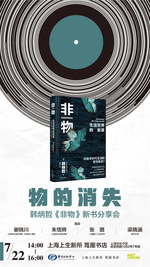 数字技术对世界最大的改变,就是让我们与实体物打交道的机会越来越少。生活世界中的一件件物品逐渐消失,它们被整合为数码设备的一个个功能。这些改变意味着什么呢?德国哲学家韩炳哲在其新书《非物》中认为,物的消失不单单是消费习惯的变迁,它还将深深改变人与外界、人与人之间的关系,现代人的倦怠与焦虑,或许正与此密切相关。7月22日下午,东方出版中心将邀请《非物》中译者以及三位新锐人文学者做客上生新所茑屋书店,他们将从各自专业角度出发,谈谈韩炳哲那些富有争议却极具启发的观点,并和现场读者一起讨论,《非物》体现的是一种抗拒进步的恋旧乡愁,抑或着实命中了当代社会的精神痛点?阅读这本书,对于我们理解人工智能时代,到底有什么意义?
