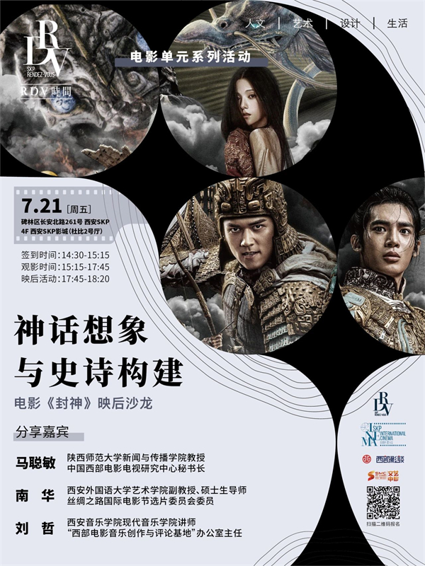 电影《封神第一部》揭开了《封神三部曲》的序幕,影片以中国古典小说《封神演义》与话本《武王伐纣平话》为基准,讲述了商王殷寿与狐妖妲己互相勾结,暴虐无道引发天谴,昆仑仙人姜子牙携“封神榜”下山,寻找天下共主,以救苍生的故事。7月21日,西安SKP联合西部影谈,特邀陕西师范大学新闻与传播学院教授马聪敏、西安外国语大学艺术学院副教授南华、西安音乐学院现代音乐学院讲师刘哲做客电影单元系列活动第四场。本期活动在西安SKP影城观看《封神第一部》影片结束后,三位嘉宾就该片的影像叙事、电影音乐、神话建构等问题与观众展开交流。