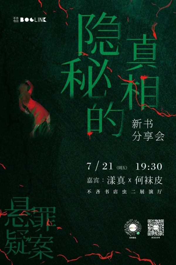 《隐秘的真相》是没药花园耗时将近两年制作的新书,这本书是没药花园的签约作者漾真根据老刑警们的亲身经历记录下来的12个真实案件。7月21日,我们邀请到漾真和没药花园的创始人何袜皮来到不吝书店,和大家共同探索这些案件背后的隐秘人心。