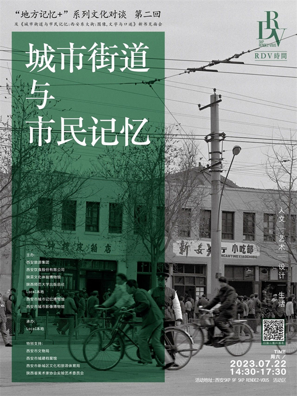 “地方记忆+”系列文化对谈 第二回暨《城市街道与市民记忆——西安东大街:图像,文字与口述》新书发布会。西安市东大街,位于四方城之中,从明代开始就是西安最重要的城市街道,曾经拥有非常特殊的地位,见证了城市变迁,承载了市民记忆。《城市街道与市民记忆——西安东大街:图像、文字与口述》一书,对东大街的建筑形态、街巷生活、文化商业等各个方面进行整理记录与系统性呈现,试图以民间的个人化方式, 建立起一份城市生活档案,展现西安人的日常生活及其背后的城市。