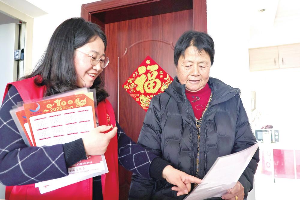 锦东社区“连心员”入户走访、发放联系卡。 供图