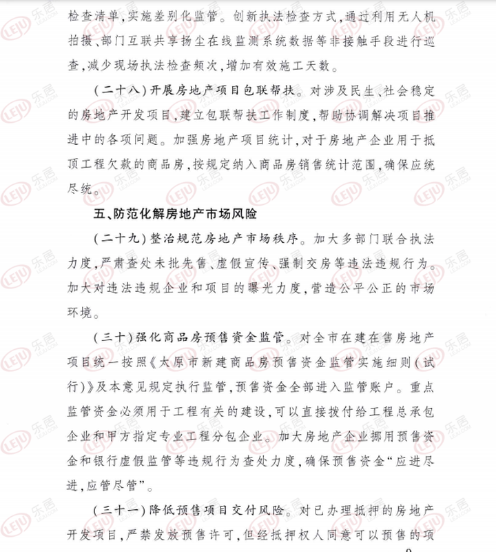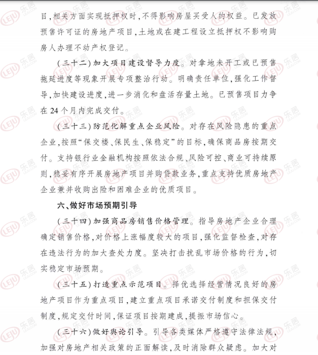 加大项目建设督导力度(消化、盘活存量土地;已预售项目在24个月内完成交付)