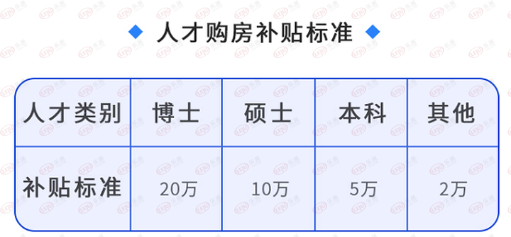 人才购房补贴:博士20万、硕士10万、本科5万、其他2万;