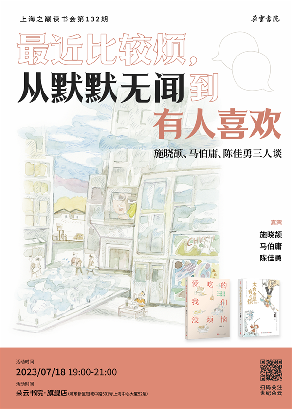 神仙也是社畜?打工人太白金星如何摆平职场难题?今年6月,作家马伯庸推出历史短小说“见微”系列新作《太白金星有点烦》,从现代视角另类演绎我们耳熟能详的西游故事。随书附10张画家施晓颉所绘创意插图。如果你和太白金星一样有点烦,不如看看陈佳勇的《爱吃的我们没烦恼》。22篇美食主题随笔,搭配施晓颉绘制的24幅精美水彩插画,从味觉到视觉,拯救大家的不开心!7月18日晚,画家施晓颉,作家马伯庸、陈佳勇将做客朵云书院·旗舰店,和大家聊聊太白金星李长庚的“西天取经”项目管理经验谈,并翻开私人美食地图《爱吃的我们没烦恼》,按图索骥,赶跑烦恼。