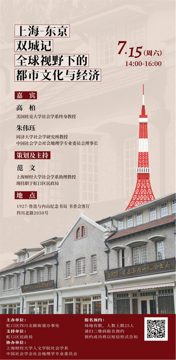 本次活动,高柏教授将做“比较视野中的日本”的主题报告,朱伟珏教授将做“上海中心城区的空间与社会重构”的主题报告。此外,两位嘉宾将从中、日以及全球城市的比较视野,就上海的城市更新、都市文化、产业政策等议题展开学术对谈。