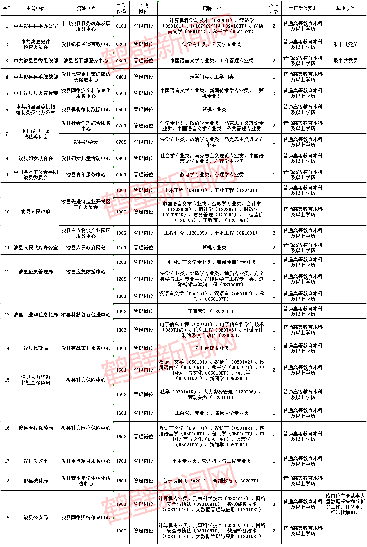 8月23日,浚县发布2023年公开招聘事业单位工作人员公告,详情如下。