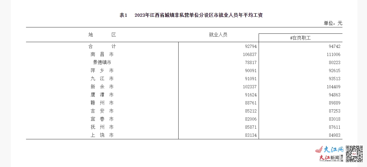 2023年江西省平均工资出炉 南昌年平均工资全省第一