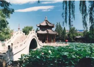 古莲花池,是保定古城八景之一,称“涟漪夏艳”,为我国北方古代园林明珠。总面积为2.4万平方米,其中池水面积7900平方米。池水以中心岛为界分为南北两塘,蜿蜒曲折的东西二渠将两塘沟通一体。南塘呈半月形,外围峭壁环峙,松柏滴翠。北塘呈不规则矩形,四周玉石堆岸,杨柳垂丝。原为张柔居所。