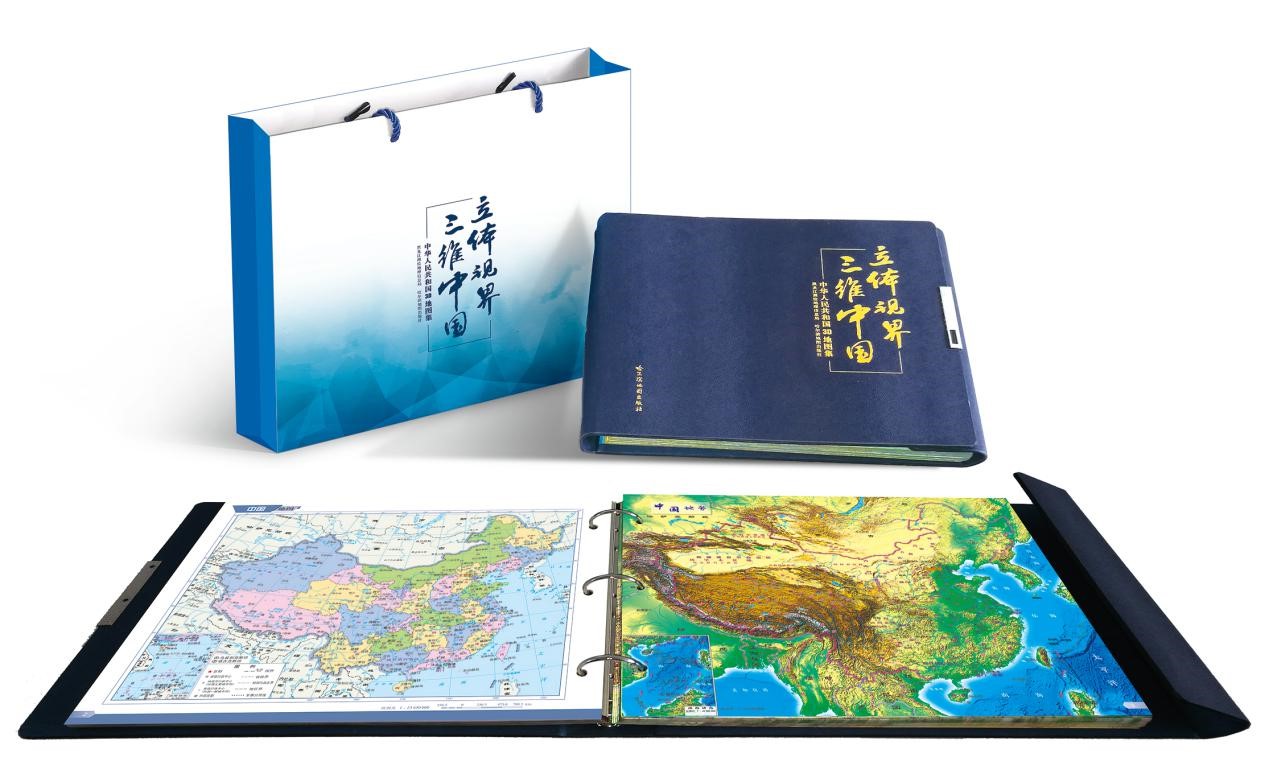 该图集融合了当今制图领域的高新科技,实现了裸眼就能从高空俯瞰立体地貌景观的效果,创新了地图表达形式,给读者以全新的感受。图集采用活页装订方式,左页为传统地图,展示了中国各省、自治区、直辖市的交通路网、行政区划、居民地、地标性建筑、风景名胜等;右页为对应的裸眼3D光栅地图,各行政区的地貌景观犹如实景般呈现在眼前,仿佛地图“活”了起来,让读者身临其境。该图集获评2019年测绘工程金奖。