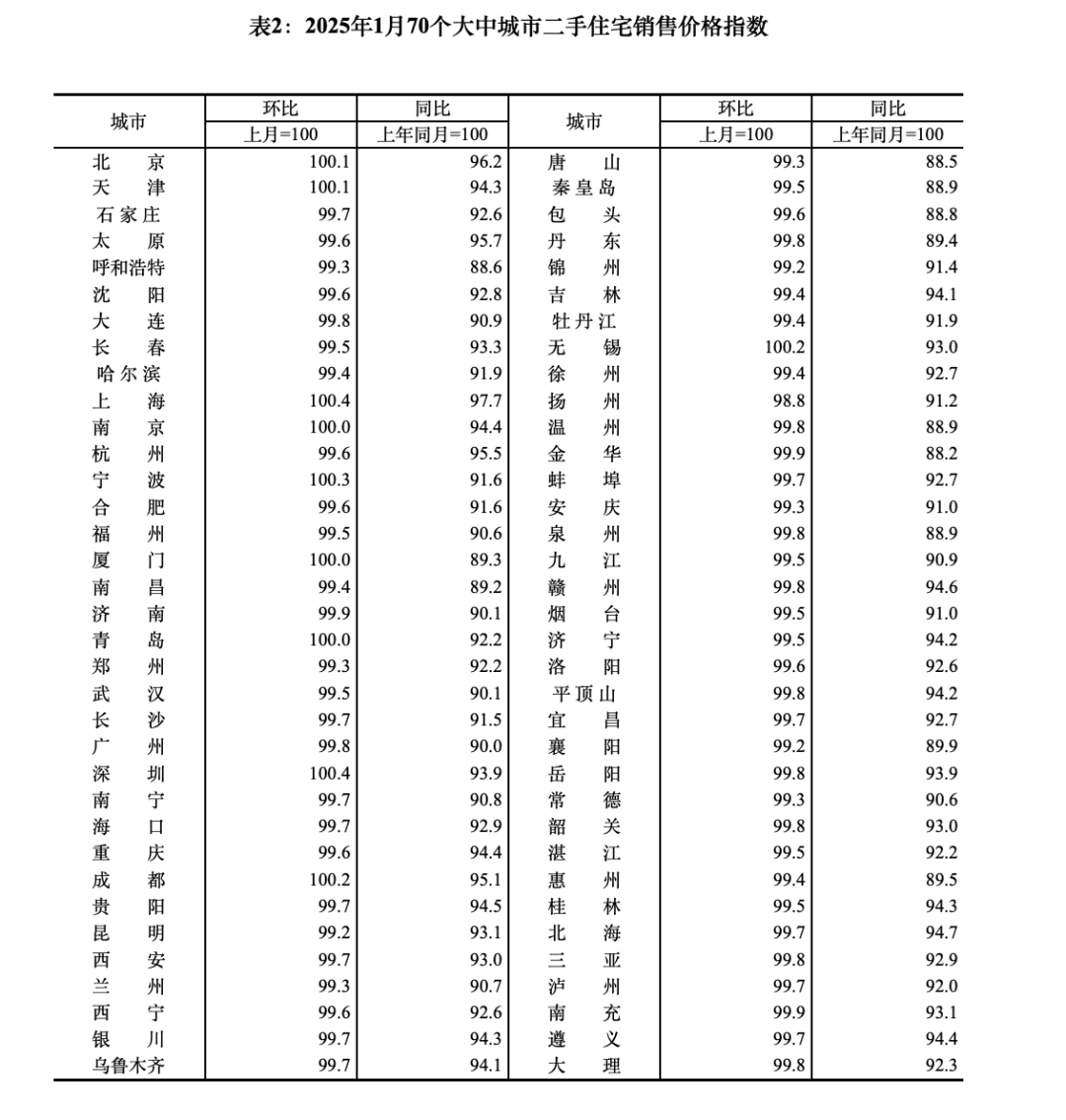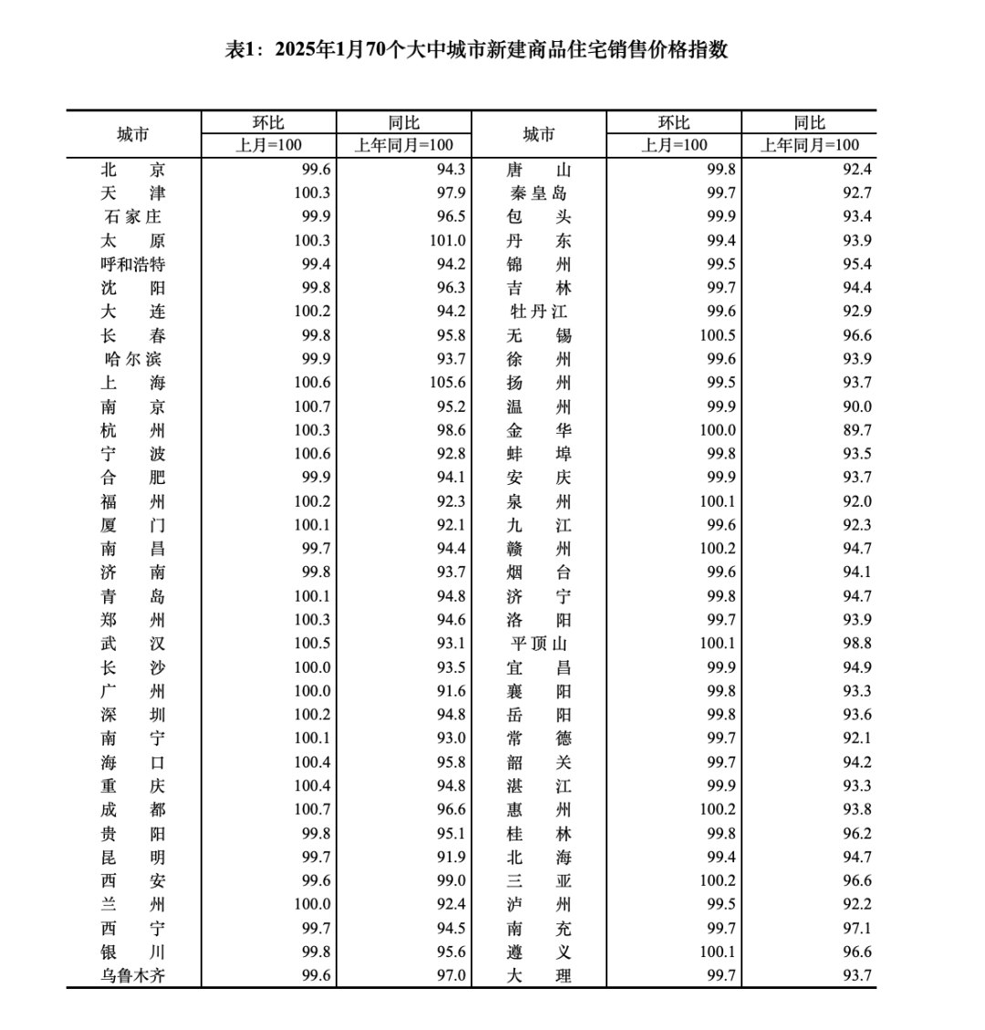 2月19日,国家统计局发布最新一期的70个城市房价指数。数据显示,2025年1月份,70个大中城市中,一线城市商品住宅销售价格环比继续上涨,二、三线城市环比总体略降;一、二、三线城市同比降幅均持续收窄。