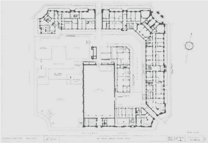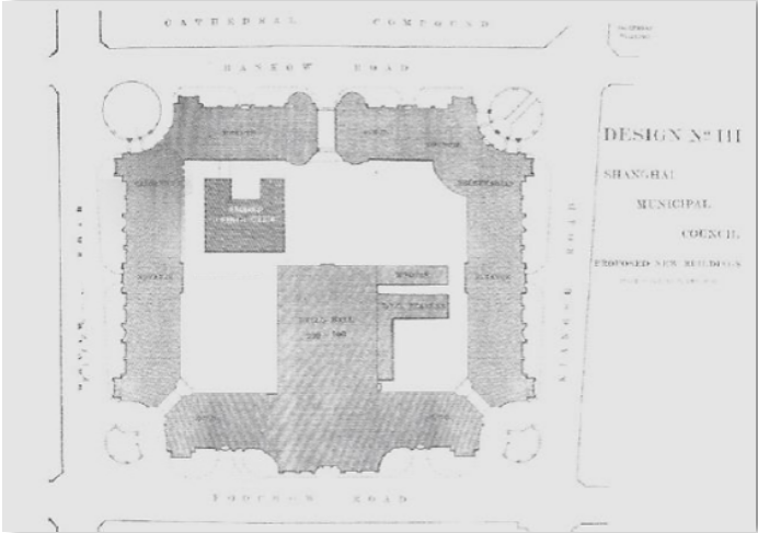 从工部局大楼原始设计图可见,大楼是一座四四方方、没有缺口的围合式建筑。然而,实际建设过程中,由于一战爆发、资金和材料短缺、大楼西南角矗立有巡捕房等历史原因,大楼在1922年竣工时没有围合,西南角留下了一处缺口,此后百年间亦未能补全。