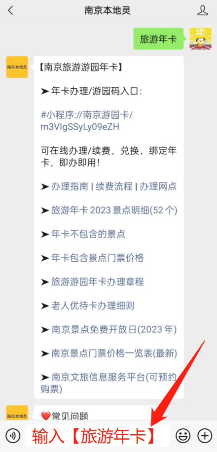 小编提示:微信搜索【南京本地灵】微信公众号,对话框回复【旅游年卡】即可获取现在南京旅游游园年卡办理最新消息、南京旅游年卡2023最新景点明细,南京游园年卡办理入口及线下办理点地址等信息!