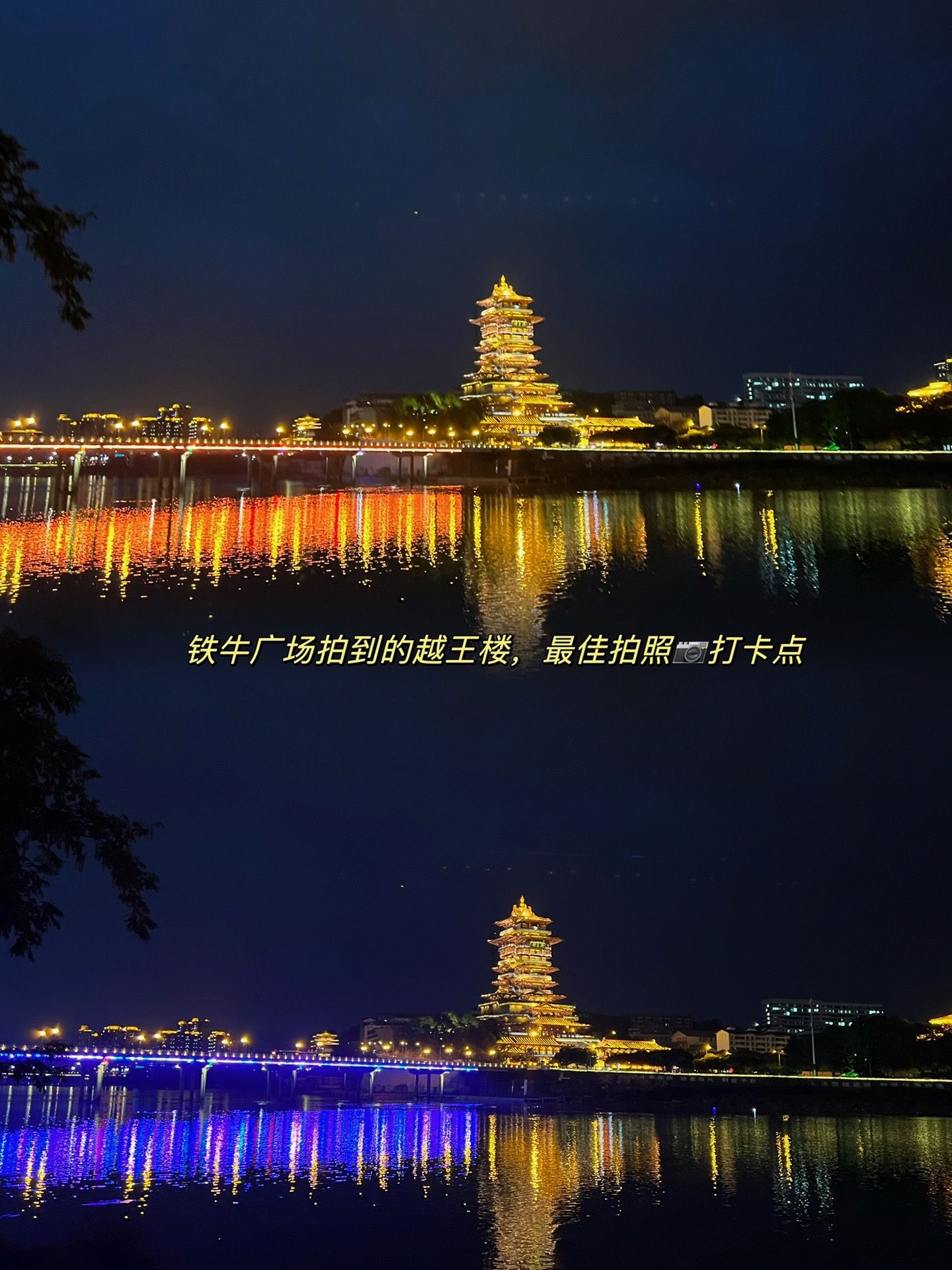 推荐越王楼打卡的最佳机位,铁牛广场的桥下的江边,或者铁牛广场拍照都不错