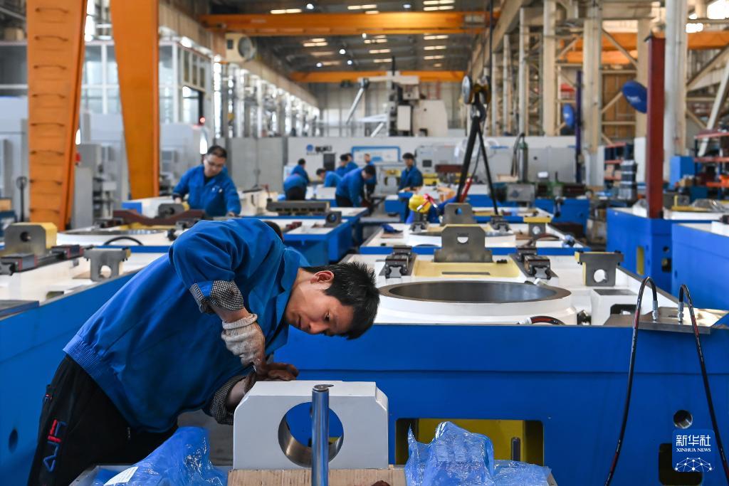 2月26日,工作人员在位于宝鸡市渭滨区的陕西秦川机床工具集团股份公司生产车间加工零部件。