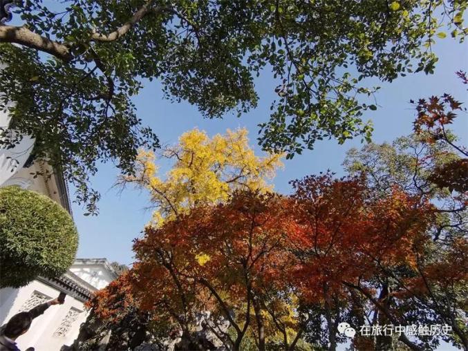 与一般古银杏枝如蠖屈的老态龙钟形象不同,这棵银杏迎风玉立,飘逸洒脱,如同小伙子一般强壮,笔直的树干直冲云天、枝繁叶茂郁郁葱葱,姿态高耸、寇如巨伞。根据树龄推断,这棵银杏是经历过湘军那把一连烧了几日的大火,“十年壮丽天王府”都“化作荒庄野鸽飞”了,而绝地逢生的。