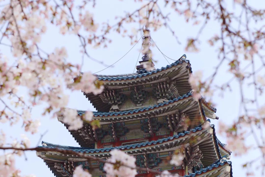 西安春天赏花热门打卡地之一,在青龙寺,可以打卡西安最美的樱花,晴天下的寺庙古建筑与粉嫩的樱花同框,满园樱花盛开,阵阵清风吹落满树的樱花花瓣,仿佛下了一场樱花雨,美得令人窒息!每年樱花花开的时节,赏花的游人超多,建议避开周末。