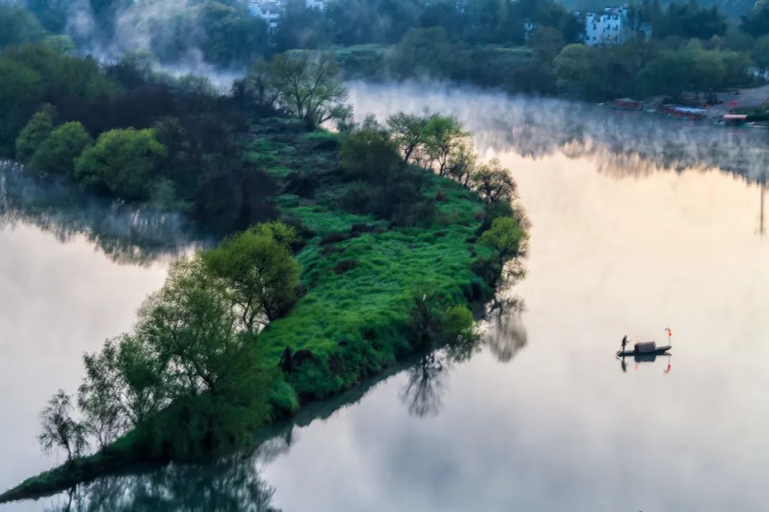 袖珍的小岛,翠绿的湖水,静谧流淌