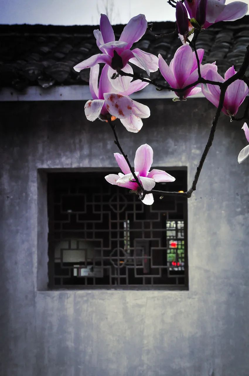 在徽州依山傍水的安静古村落里,春天院子里玉兰花开,让人见之难忘。