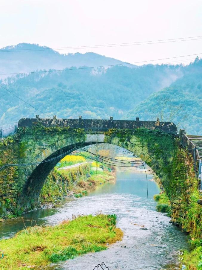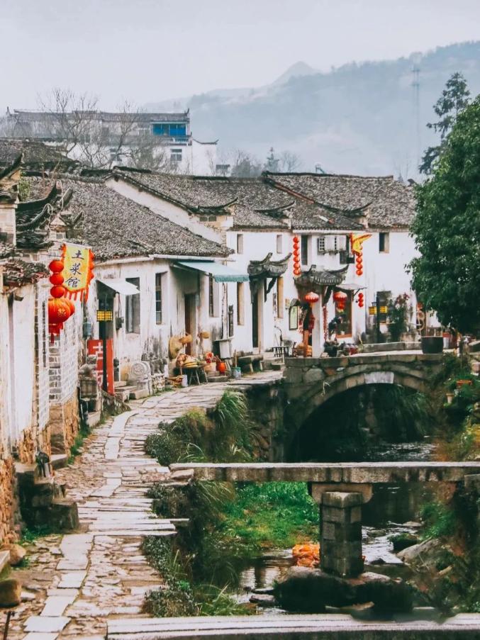 一条河穿过村子,百年前的古桥跨河而过,站在桥上,可以看到查济背靠的青山,雾气弥漫,在任何角度看查济都是一幅画卷。