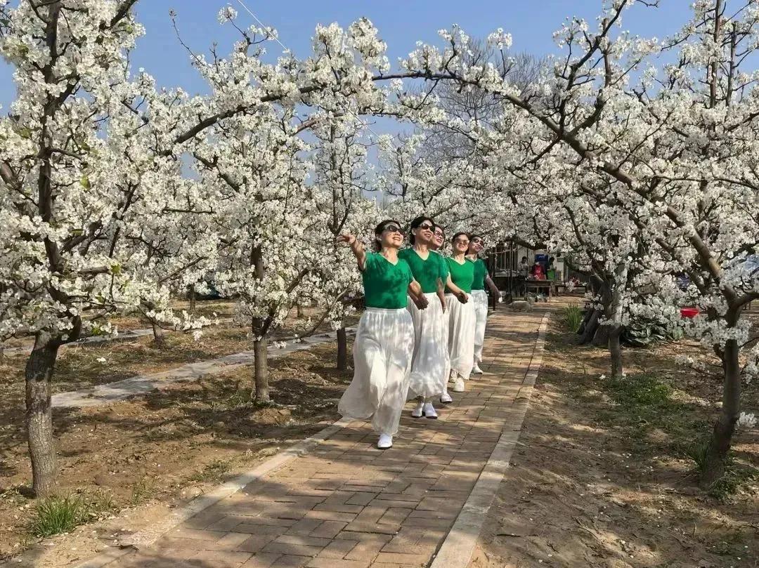 花朵是自然的信笺,传递着美好的春意。因此,旅行的第一站,我们来到李桂芬村百年梨园,共赏梨花的清丽脱俗。