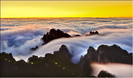 雨后放晴的日子,越过峡谷、穿过松林、攀上山峰,伴随着明媚的霞光,赫然眼前的翻腾云海,莫不令人赞叹——仙境黄山,竟是如此梦幻!而在这一刻,数万年前黄帝流连于此得道修仙的传说,也让人深信不疑。