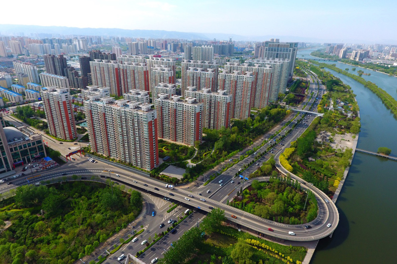 俯瞰山西省太原市万柏林区一角(4月26日摄)。