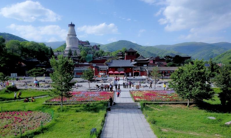 有古籍记载:“五峰耸出,顶无林木,有如垒土之台,故曰五台。”五台山属太行山系的北端,为太行山脉主峰。五台山是中国唯一一个青庙黄庙共处的佛教道场。截至2018年底,五台山有宗教活动场所86处,其中多敕建寺院,多朝皇帝前来参拜。著名的有:显通寺、塔院寺、菩萨顶、南山寺、黛螺顶、金阁寺、万佛阁、碧山寺等。