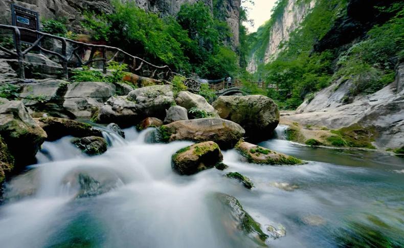 八泉峡原名“八道水”,因峡谷中有八股泉水同出一地而得名。峡谷内将北方山川的壮观和江南秀水的柔美完美融合:有重峦叠嶂的山峰、鬼斧神工的峭壁、千姿百态的山石、绿浪滔天的林海、潺潺流淌的泉水、清澈见底的池潭,景区内有门楼景观、峡谷景观、索道景观和步道景观四大游览区域,主要景点36处。