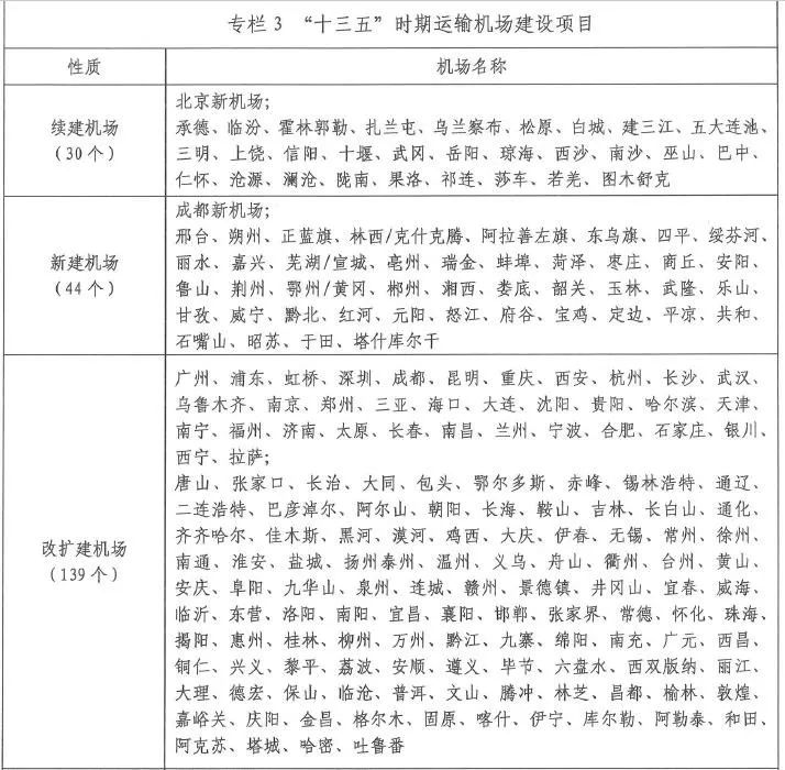 比如在民航“十三五”规划提到,“接近终端容量且有条件的城市,研究论证第二机场建设方案”。
