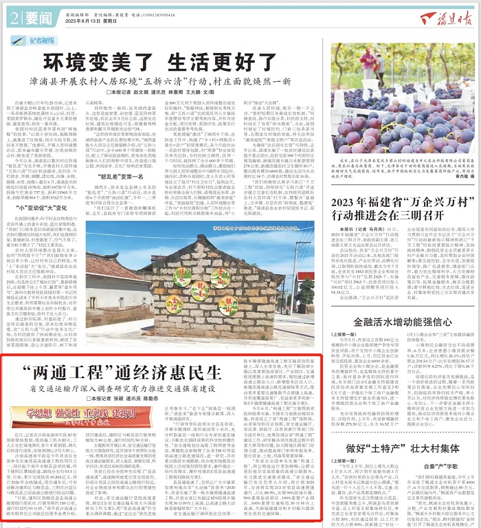 今年6月,“两通工程”方案得到省政府批准实施。为强有力地推动规划实施,我省成立了省“两通工程”指挥部,由省领导担任总指挥,省交通运输厅、发改委、财政厅、自然资源厅等部门作为成员单位,统筹协调全省“两通工程”建设工作,研究解决项目推进过程中的重大事项和问题,加大跨地区跨部门协调力度,推动提高部门审核审批效率,强化资金、土地、用海等要素保障。