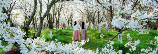 [双清田园综合体]春季以樱花“红粉佳人”“阳光樱”“染井吉野”为主打花卉,共种植600多亩,5000多株;秋季以紫薇“美国红火箭”为主要花卉,共种植180亩,上万株;其他四季花卉有绣球、百日菊、格桑花、马鞭草、黄金菊、黄秋英等作为陪衬和点缀。