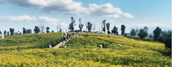 三月的桃花源,从五柳码头溯溪而上,到拥有千米樱花长廊的秦溪茶园,穿过芳草鲜美的桃花林,到拥有百余种桃树的万亩桃林,再到白麟洲村的1000亩油菜花海,每一站都是对自然之美的诠释。线路不仅展现了丰富的花卉资源,还融入了桃花源的历史文化、民俗风情,让游客在赏花的同时,体验田园生活的宁静与美好,感受春日赏花独有的浪漫与韵味。每当春日来临,十美堂镇被油菜花装点得如诗如画。在阳光的照耀下,油菜花闪耀着金色的光芒,田畴之间仿佛被铺上了金色的锦缎。漫步其中,阵阵花香扑鼻而来,游客可在此尽享春日的美好与惬意。