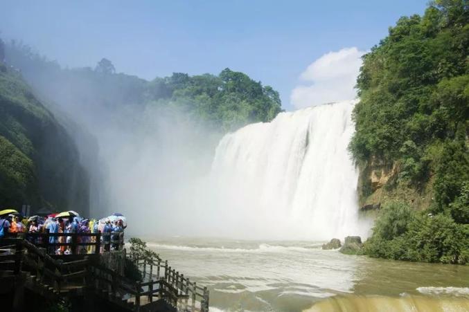 黄果树大瀑布:夏季的黄果树大瀑布已经正式进入丰水期,奔腾的河水从70多米高的悬崖绝壁上飞流直泻犀牛潭,发出震天巨响,蔚为壮观。