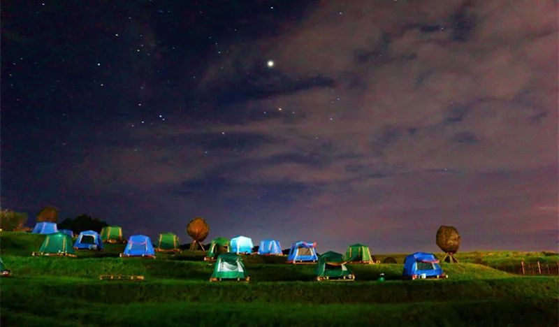 高坡扰绕露营基地:在漆黑一片的野外,抬头看看星空,听着蝉鸣,唱首老歌,似乎真的可以忘了平日的烦恼。如果你想寻幽访胜、回归自然、观日出落霞、在暗夜里和星空银河相遇,那你或许会喜欢这里——花溪高坡扰绕露营基地。
