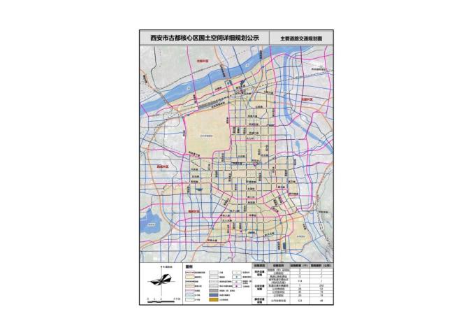 继承西安“棋盘式”路网格局,打造级配合理、疏密有致的道路系统,古都核心区形成“二十一横十四纵”的城市干路体系。