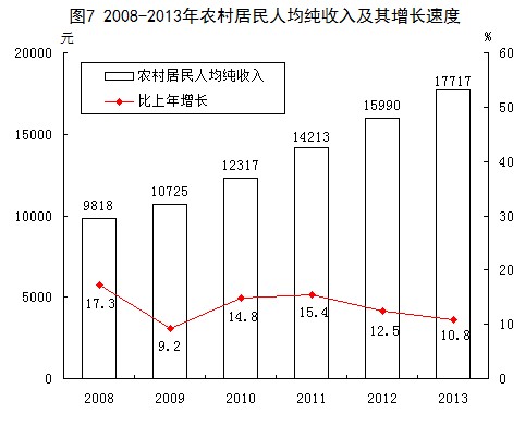居民收入:城市居民年人均可支配收入30238元,比上年增长9.8%;年人均消费支出22516元,增长10.3%。农村居民年人均纯收入17717元,比上年增长10.8%;年人均生活消费支出8871元,增长16.2%。城市居民家庭恩格尔系数36.3%,农村居民家庭恩格尔系数39.6%。