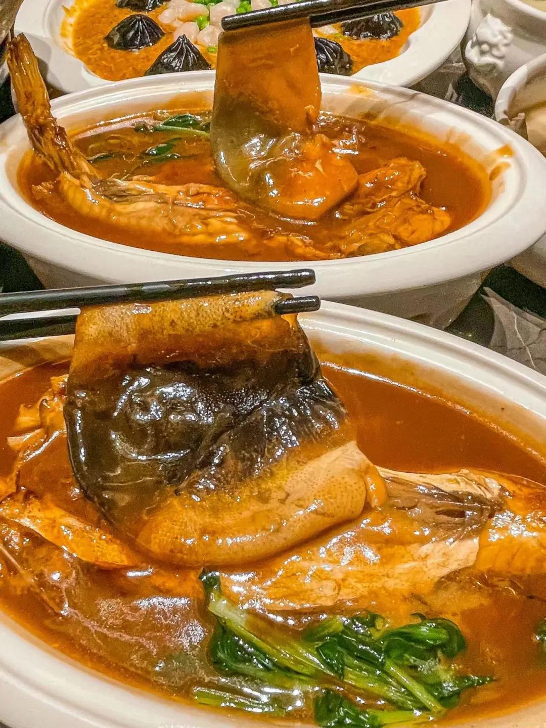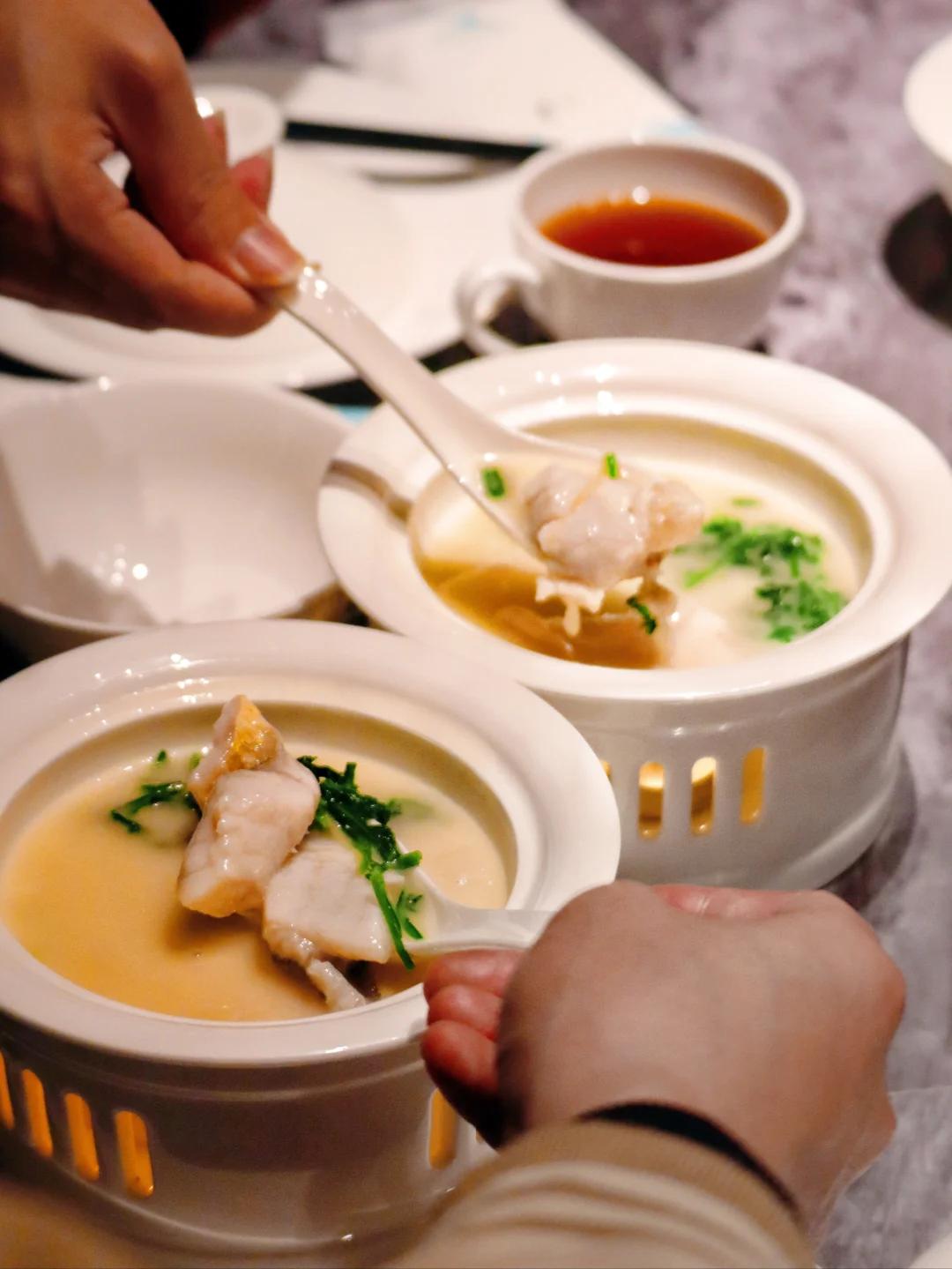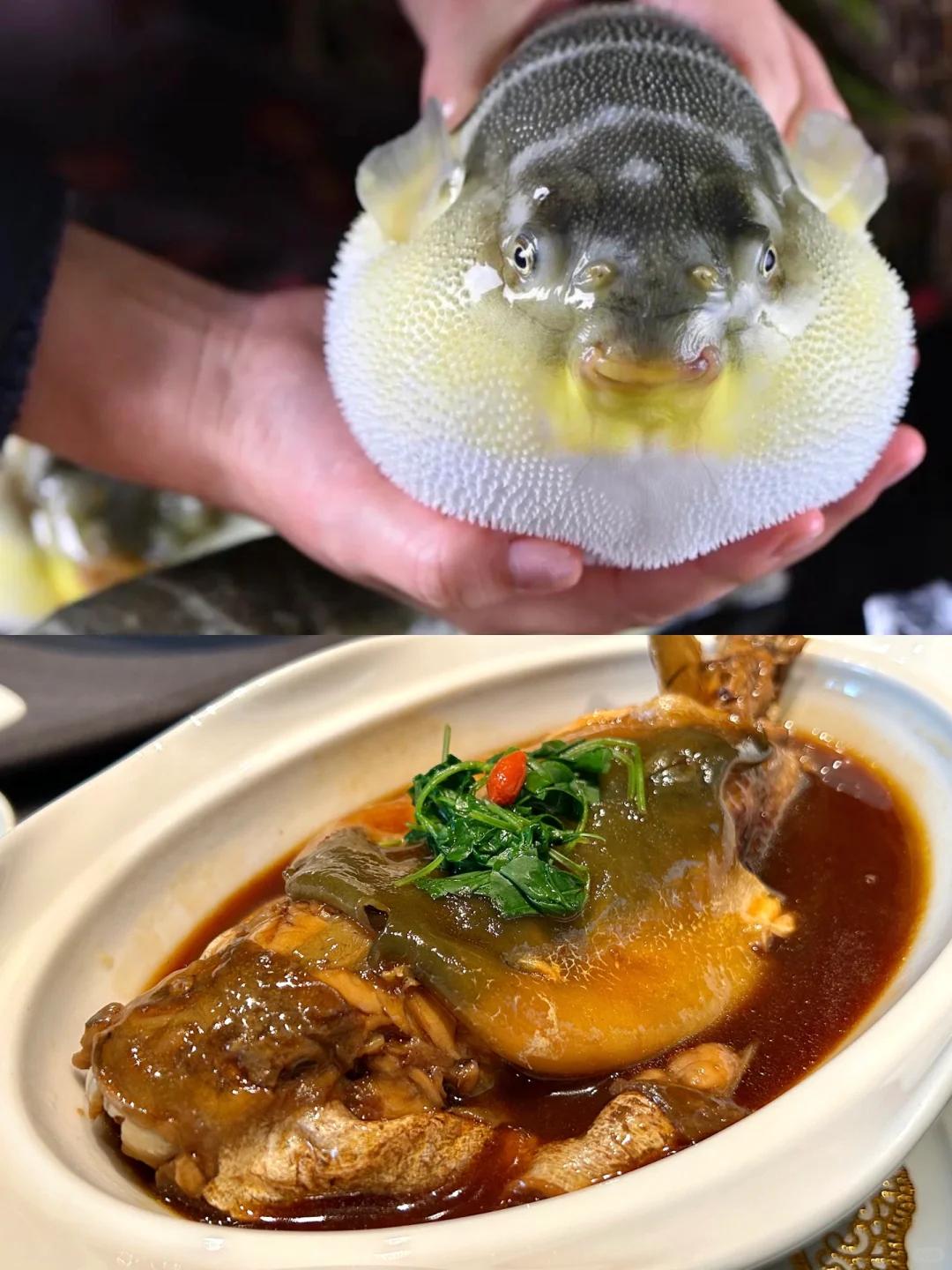 通常会把河豚皮整张撕下来,翻过来,再盖在鱼身上。再配上老火高汤,最大程度的保留鱼肉的鲜美口感。