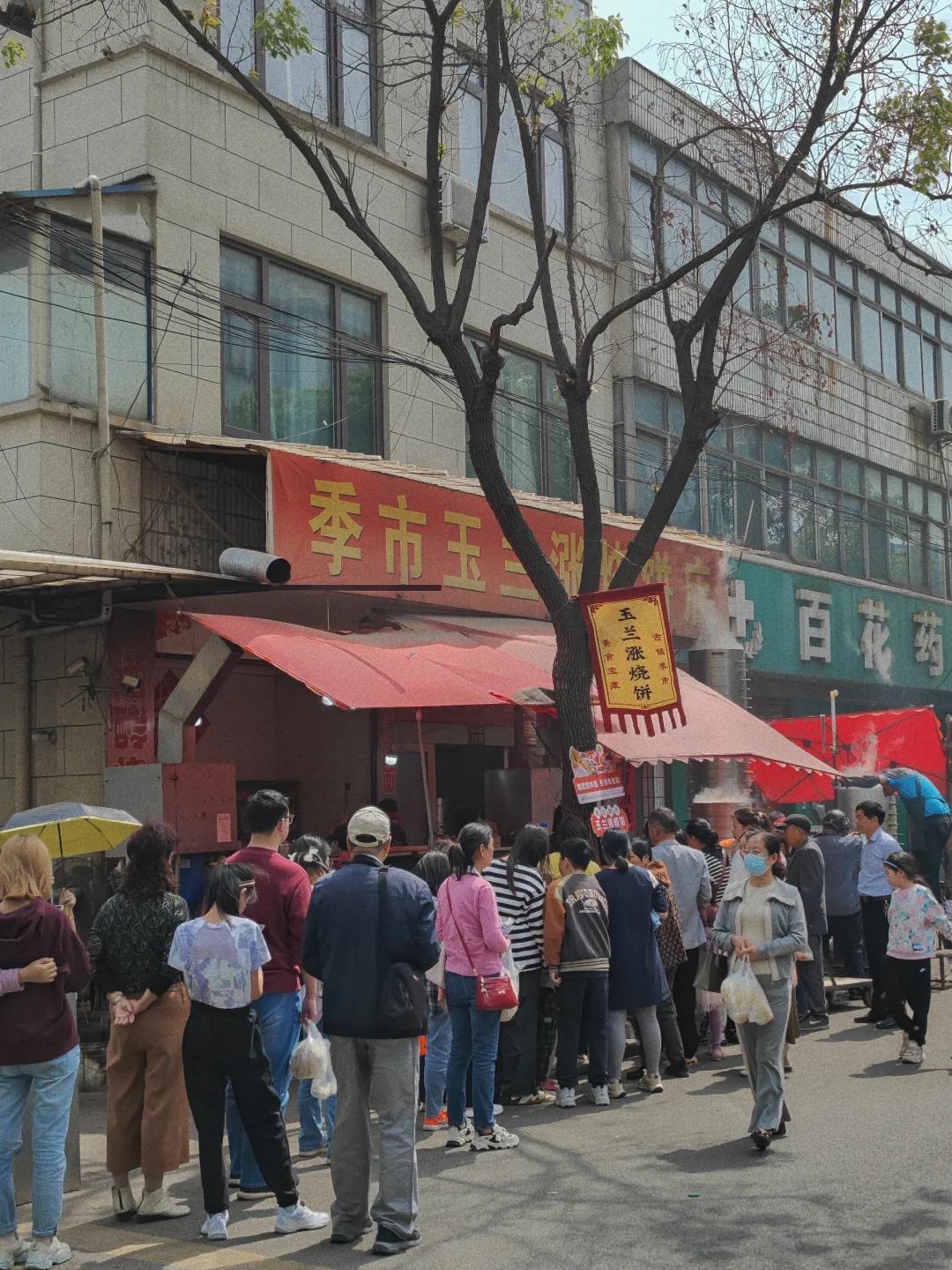 涨烧饼是店里面的主流产品,每天来购买的人都络绎不绝。若是碰上周末节假,还会排队等一锅好。