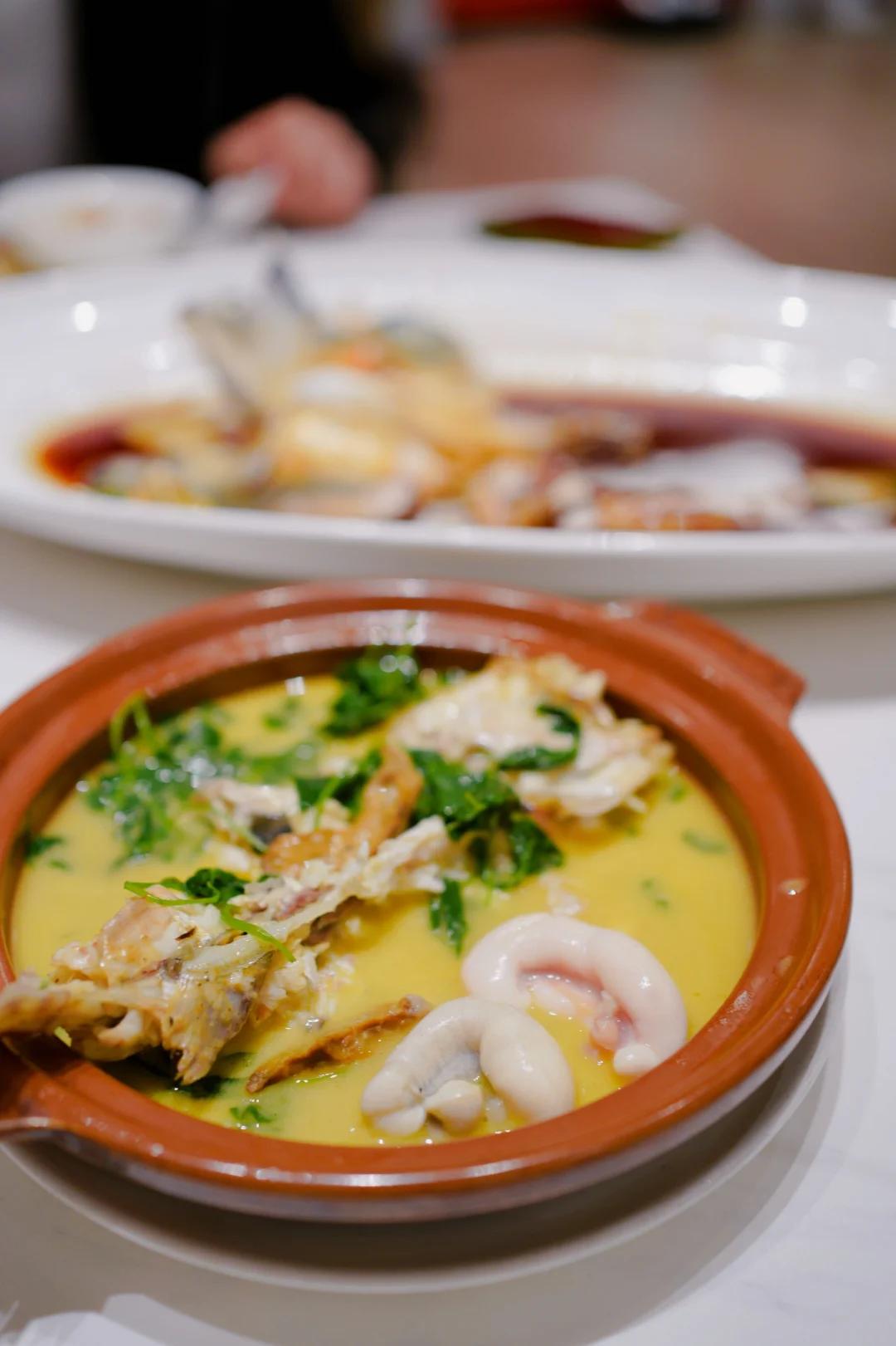 不管是蟹黄汤包、蟹黄粉皮、蟹黄狮子头、蟹黄点心、蟹黄汪豆腐等等都好吃的不得了......