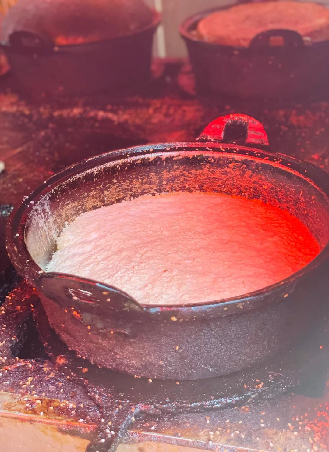 需要先用酒药发酵,等十几个小时之后面团逐渐膨胀上涨,再倒入铁锅内文火慢烧。