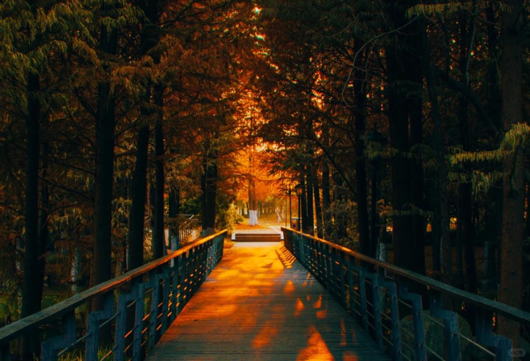 秋天的时候,这里还有绚烂的秋色,水杉森林像油画一般,只是路过也让人忍不住停留。