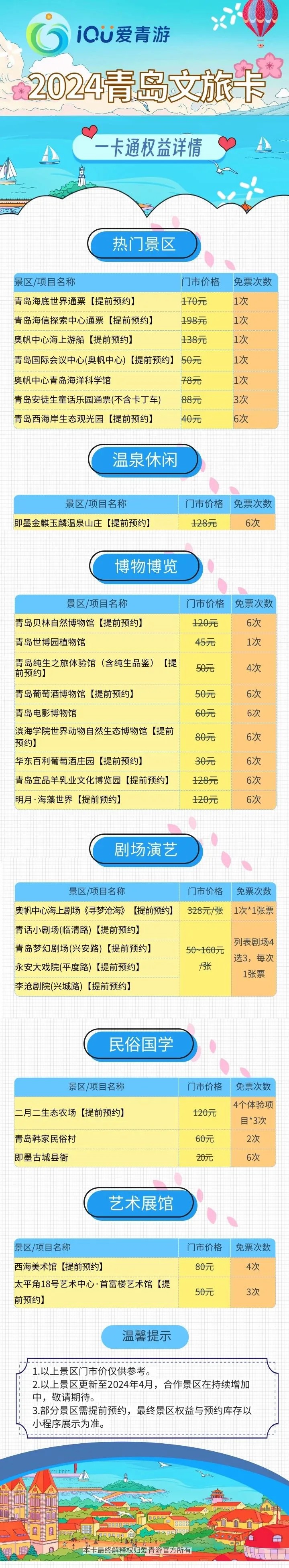 “爱青游”整合了岛城近30家优质的文旅资源,不仅涵盖了青岛地标性景区,如青岛海底世界、奥帆中心游船、海信探索中心等,还包括温泉休闲、演艺话剧、博物馆、美术馆、民俗体验等多样化的文旅项目,满足不同游客的个性化需求。游客持卡即可畅享青岛近30家景区的免票权益,总价值近8000元,以极低的成本,享受到丰富多彩的旅游体验。这种一卡通产品模式,不仅为游客提供了优惠便利,也为景区带来了更多的客流和曝光机会,实现了资源共享和互利共赢。