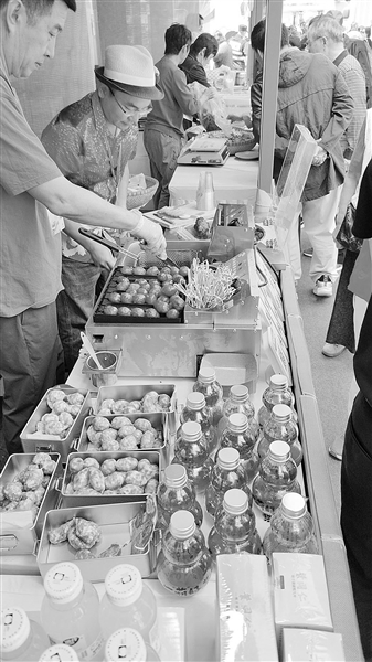 将晒干的东海紫菜与鲜嫩猪肉混合,揉搓成团,蒸熟后香气四溢。在洞头紫菜肉丸可以说是当地人宴请的必点菜单,在各类重要宴席上,一般最后呈上桌,寓意团团圆圆。“外地人一般只知道温州有梅干菜肉丸,现场很多人对紫菜肉丸感到很新奇,试吃后都赞不绝口。”温州洞海深林食品有限公司经理林骁韬介绍,此次市集,除了紫菜肉丸,公司还带去了墨鱼饼和自创的加了芹菜汁的芹香鱼饼,反馈都很不错,“受欢迎程度超过预期,我的微信就加了100多名游客,还有杭州、温岭特产店商家看好我们的产品来找我们,已经谈好了代销合作。”