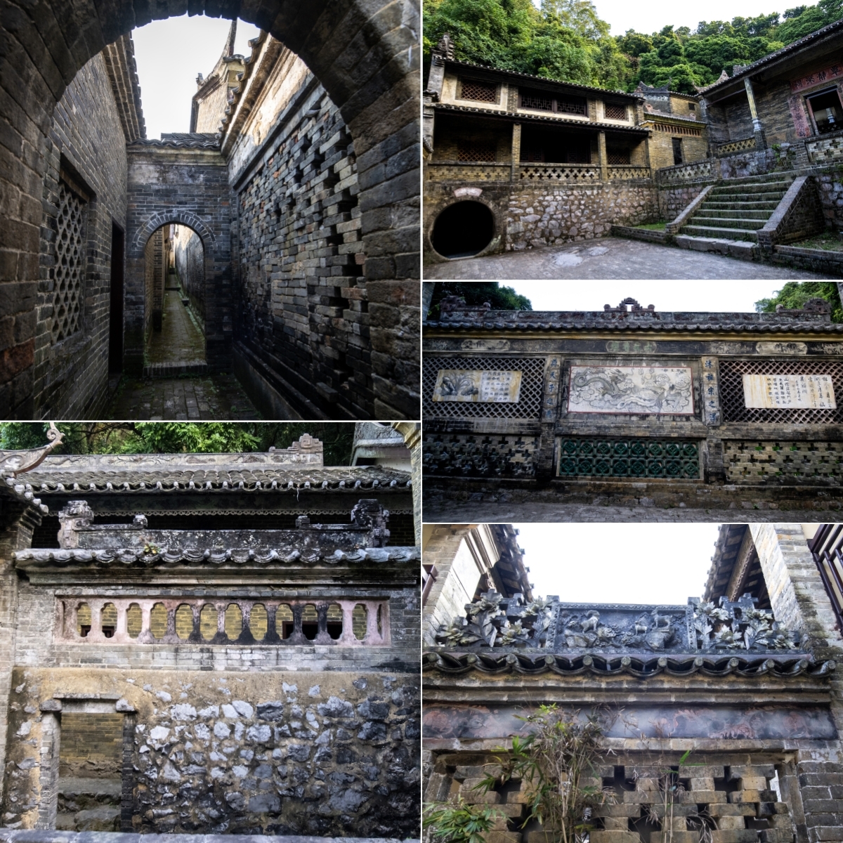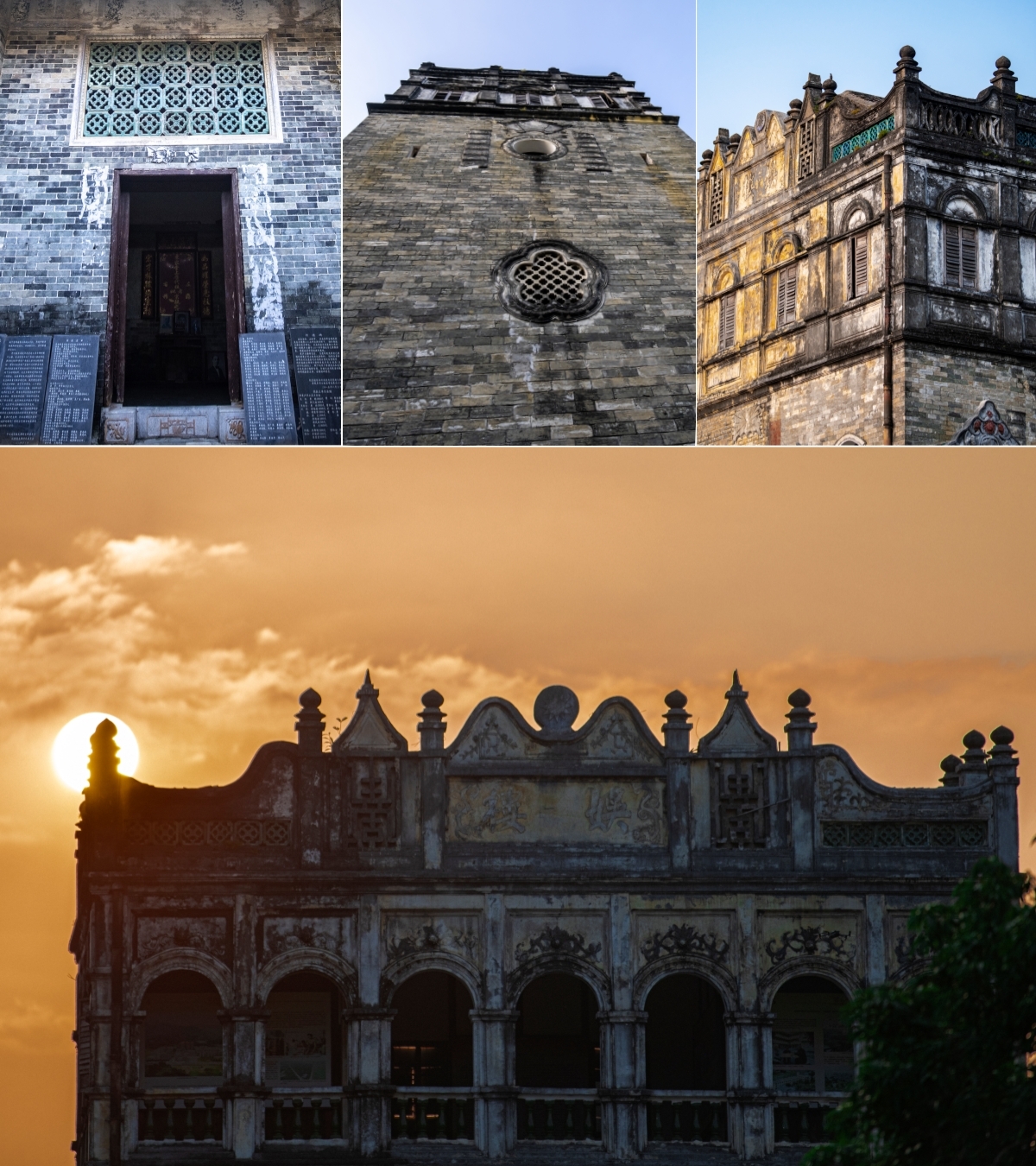 榜山村的古建筑群巧妙融合了中西建筑风格,既有西洋风格的山字拱顶间墙、古罗马柱式开窗,又有中式风格的歇山顶重檐、马头墙,展现出独特的艺术魅力。