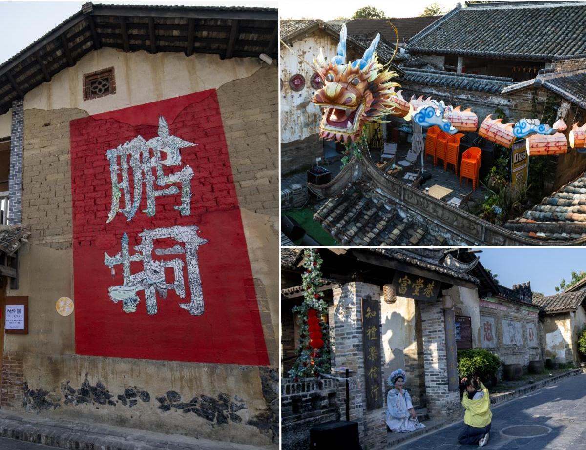 “国潮”唤醒乡村魅力,吸引不少游客前来拍照打卡。